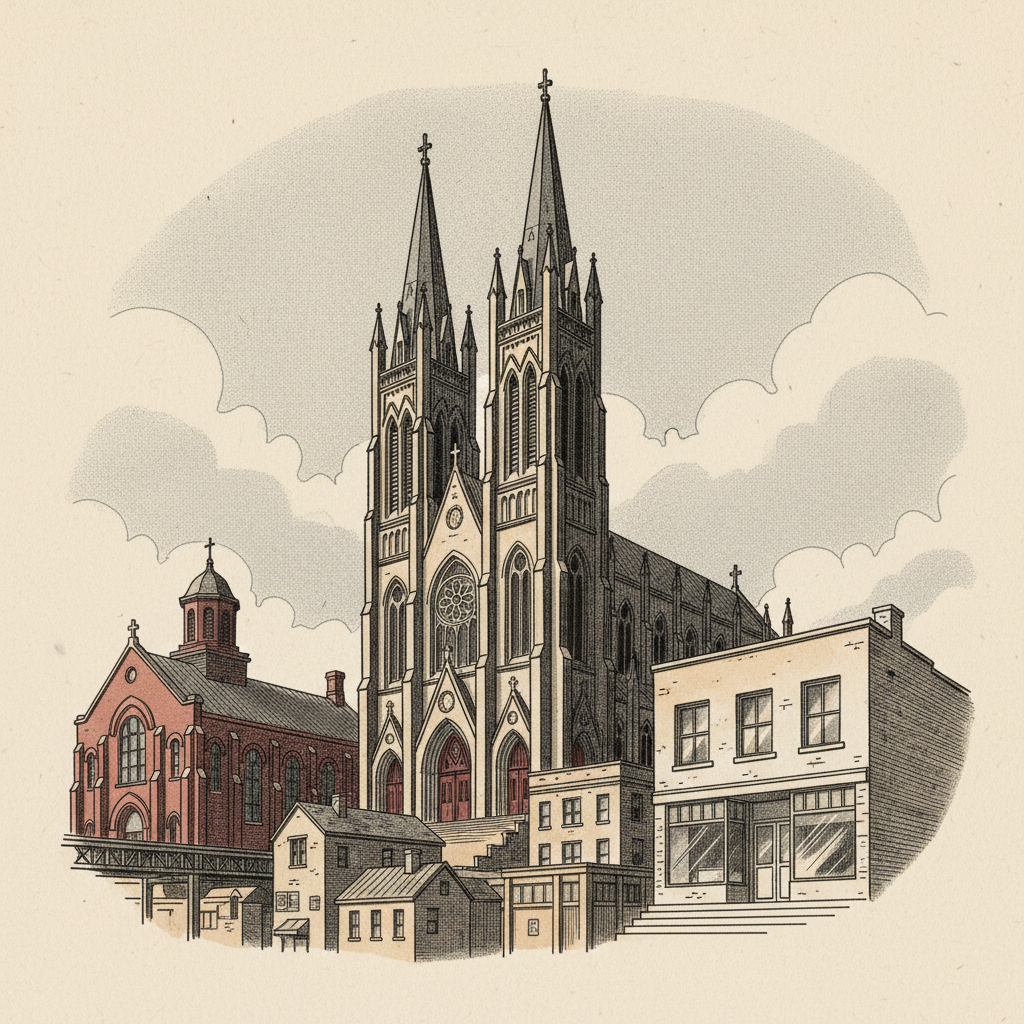 Six Detroit Catholic parishes built between 1848 and 1897 still operate in the Archdiocese of Detroit, anchoring Corktown, the East Side, and Southwest Detroit through 150 years of industrial rise and population collapse.